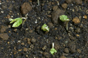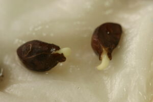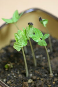 どうやら「原坊の朝顔」の20代目にあたるらしい。昨日から芽を出し始めたので、今日、土に移す前に撮影しておいた。