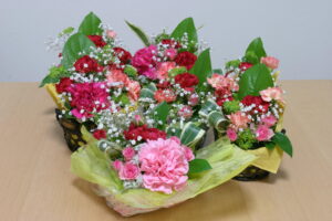 相方が3時間ほどかけて7つのフラワーアレンジを作ったので、まとめて記念写真。
