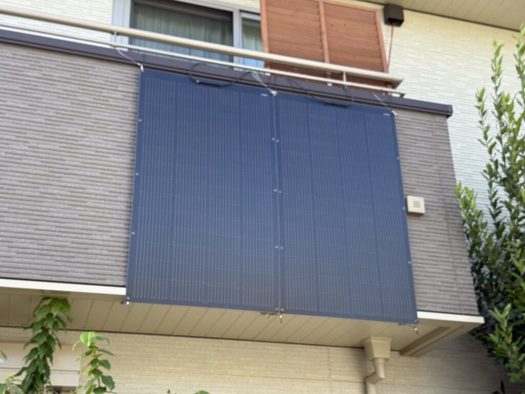 で、本日、200Wのパネルを2枚、ベランダから吊るす形で設置した。こちらはSolix C1000 gen2に接続して、Mac Studioとその周辺機器の電力を賄う。