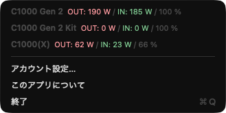 拙宅にはC1000(X)と、C1000 Gen2しか無いため、他の機種での動作確認はしていない。もちろん、Anker非公式アプリなので、利用は自己責任でよろしくお願いいたします。