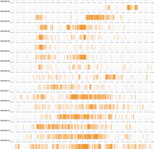 ミツバチが入居し、カメラを設置し、カメラから動体検知のデータをJSONで取得出来るようになったので、Pythonでチョチョイと画像化してみた。 深夜には峨などの夜行性の昆虫の活動による誤検知とは別に、巣の入口を見回るよう […]