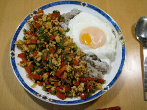 ガイ(鶏肉)・パッ(炒めた)・バイカパオ(バジルの葉)、ですかね? レシピ(二人分) 鶏挽肉200グラム ピーマン3個 パプリカ1個 タマネギ半個 醤油大さじ2 砂糖大さじ1 オイスターソース適量 バジル(今回はスイート […]