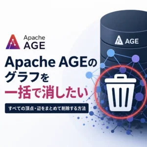 AGEでcreate_graph()したグラフは、ag_catalogスキーマのag_graphテーブルに格納されており、以下のように格納されている。 で、これを一括削除するには、drop_graph()を実行する必要が […]